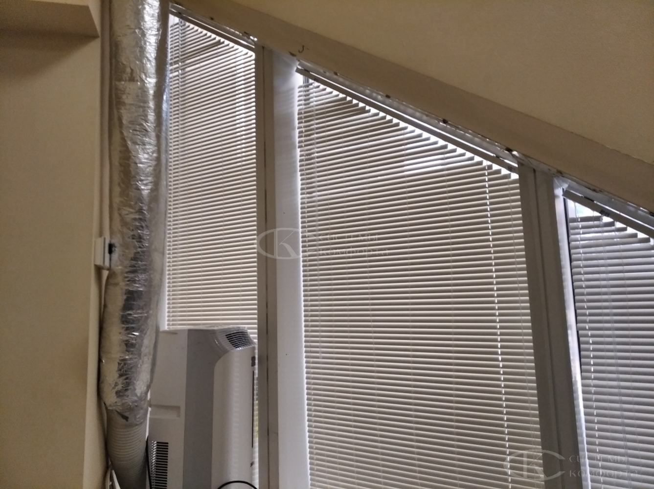 Чистка ламелей проводится в закрытом состоянии обычной влажной губкой. В случае сильного загрязнения воспользуйтесь мыльным раствором. При необходимости изделия можно снять с окна.